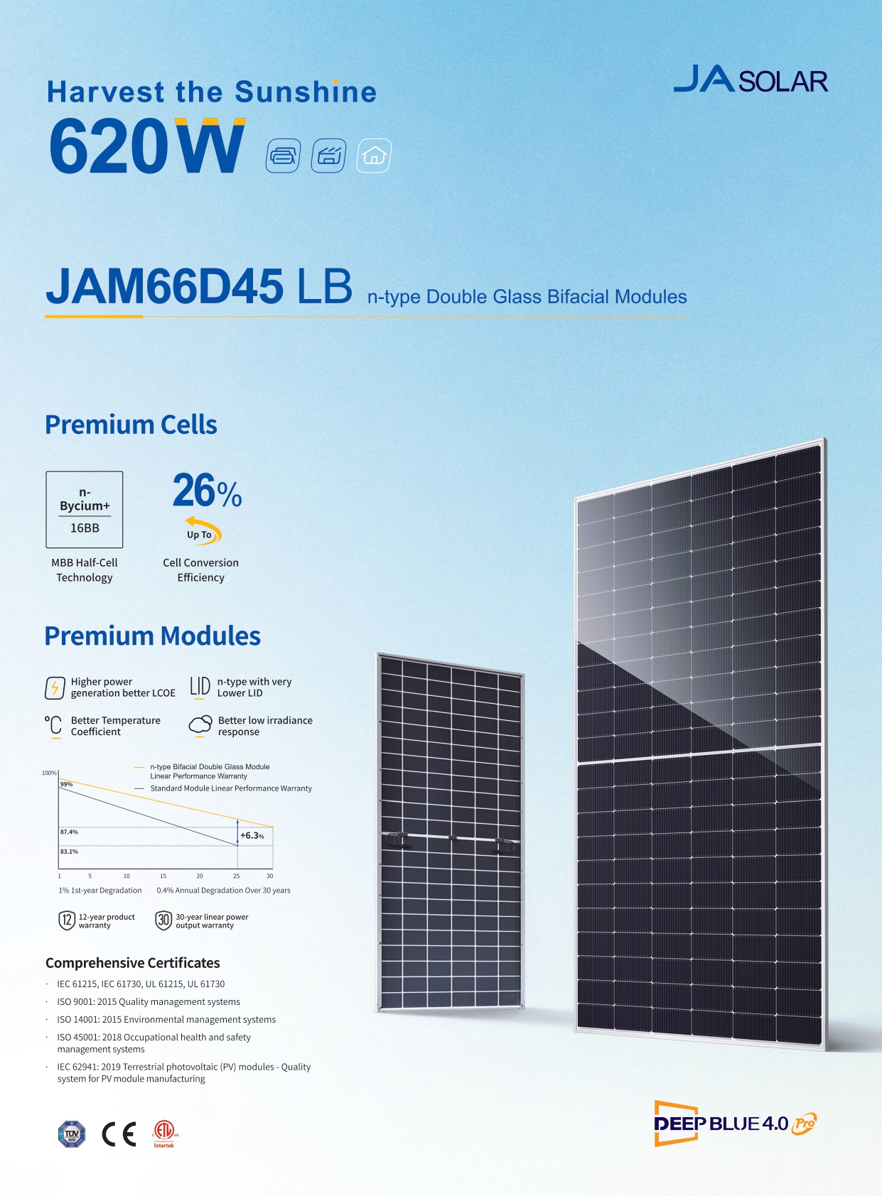 JA Solar Mono 132Cell N-Type 620W Bifacial Module