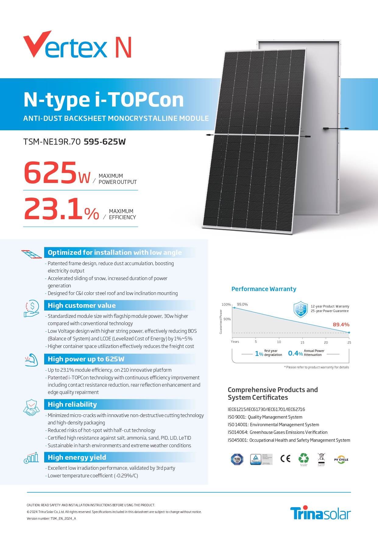Trina Vertex 620W MBB Half Cell N-Type Mono 132 Cell